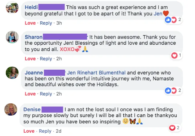“I'm more in tune now then I have been in a very long time (about 5 years or so). I noticed my readings are getting stronger and not feeling like I'm just guessing. My husband commented that I have been much more relaxed and peaceful since I started this class. He also told me: if she has anymore classes, you're taking them 😏”